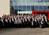 Beschreibung Empfang der Jubelkönige Sieben Jahre nach dem ersten Königsempfang, am 17. Juni 1974, wurden erstmals, nach einer Idee von Hermann Ascheberg, sämtliche amtierende Jubelkönige aller den Vereinigten angeschlossenen Vereine morgens zu einem eigenen Empfang eingeladen. Bis 1995 fanden alle Empfänge bei herrlichstem Sonnenschein draußen in den Anlagen von Hof Deitmar statt. Im Jahre 1996 „flüchtete“ man kurzentschlossen wegen des schlechten Wetters in die EMS-HALLE. Bis auf wenige Ausnahmen wurde das Wetter am letzten Juni-wochende in den vergangenen Jahren nicht besser. Dankbar nahmen deswegen die Verantwortlichen das Angebot von Dr. Peter Eckhardt an, fortan diese Veranstaltung in der Schalterhalle der VerbundSparkasse Emsdetten-Ochtrup durchzuführen. Wie beim Königsempfang beginnt dieser Tag für die Vorstandsmitglieder um 8 Uhr mit dem Belegen der Brötchen. Um 10 Uhr werden alle Jubilare auf der Freitreppe zur Sparkasse für die Chronik abgelichtet. Während der Veranstaltung versorgen, vereinsweise wechselnd, Schützenbrüder die Anwesenden mit frischem Pils und der Musikzug der Freiwilligen Feuerwehr begeistert mit flotten Märschen. Aber auch das Hollinger Blasorchester, der Kolping Musikzug oder die Musikzug der Freiwilligen Feuerwehr Rheine sind schon zur Freude der Jubilare aufgetreten. Der Vorsitzende begrüßt, der Bürgermeister spricht Grußworte, Josef Krüler und Ewald Enting unterhalten auf humorvolle Weise. In den letzten Jahren hat auch der 2. Vorsitzende des Heimatbundes, Ludger Plugge, durch seine plattdeutschen Vorträge zum Erfolg des Vormittags beigetragen. Die meiste Arbeit jedoch an diesem Tag hat der 1. Vorsitzende. Lange vor diesem Termin beginnt Rainer Müllmann mit den Vorbereitungen. Mit Unterstützung aus den Gesellschaften trägt er mühsam besondere Erlebnisse, Geschichten und Anekdoten aus den Leben der Jubilare zusammen. Besonders von den Älteren. Den 50jährigen, den 60- und 65jährigen. Ja wir hatten auch schon 70jährige Jubilare. Es ist immer wieder ergreifend zu beobachten, wie die Augen der Angesprochenen funkeln, wenn aus ihrem früheren Leben berichtet wird. Denn meistens werden die Erlebnisse vorher nur mit den nächsten Angehörigen vorbesprochen. Die Jubilare vermuten nichts. Umso größer ist ja die Überraschung. So vergeht immer viel zu schnell ein unvergesslicher Vormittag, der mit dem Dirigieren der Blasmusik endet. Richtig enden solche Vormittage nicht selten erst in einem Dämmer-schoppen im Kreise der engeren Schützenbrüder in der eigenen Vereinskneipe.